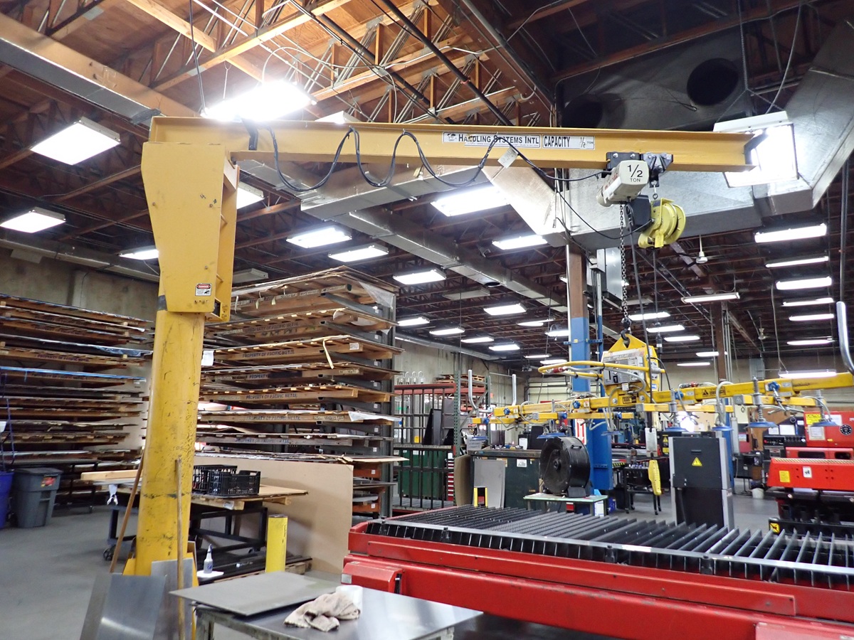 1/2 TON CAP., 360 DEGREE FLOOR MOUNTED JIB CRANE W/COFFING CHAIN HOIST
