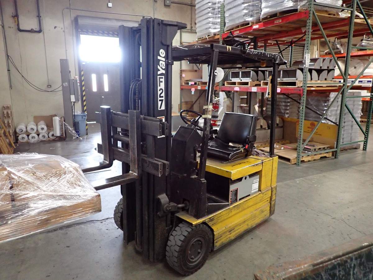 3,000 LB CAP. 3-WHEEL ELECTRIC FORKLIFT, S/N: N556006, HRS: 6,800