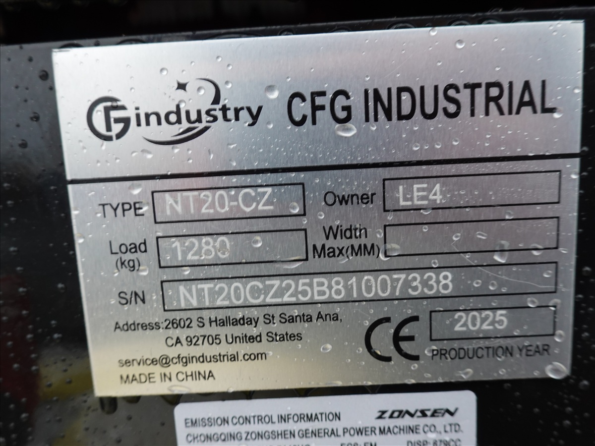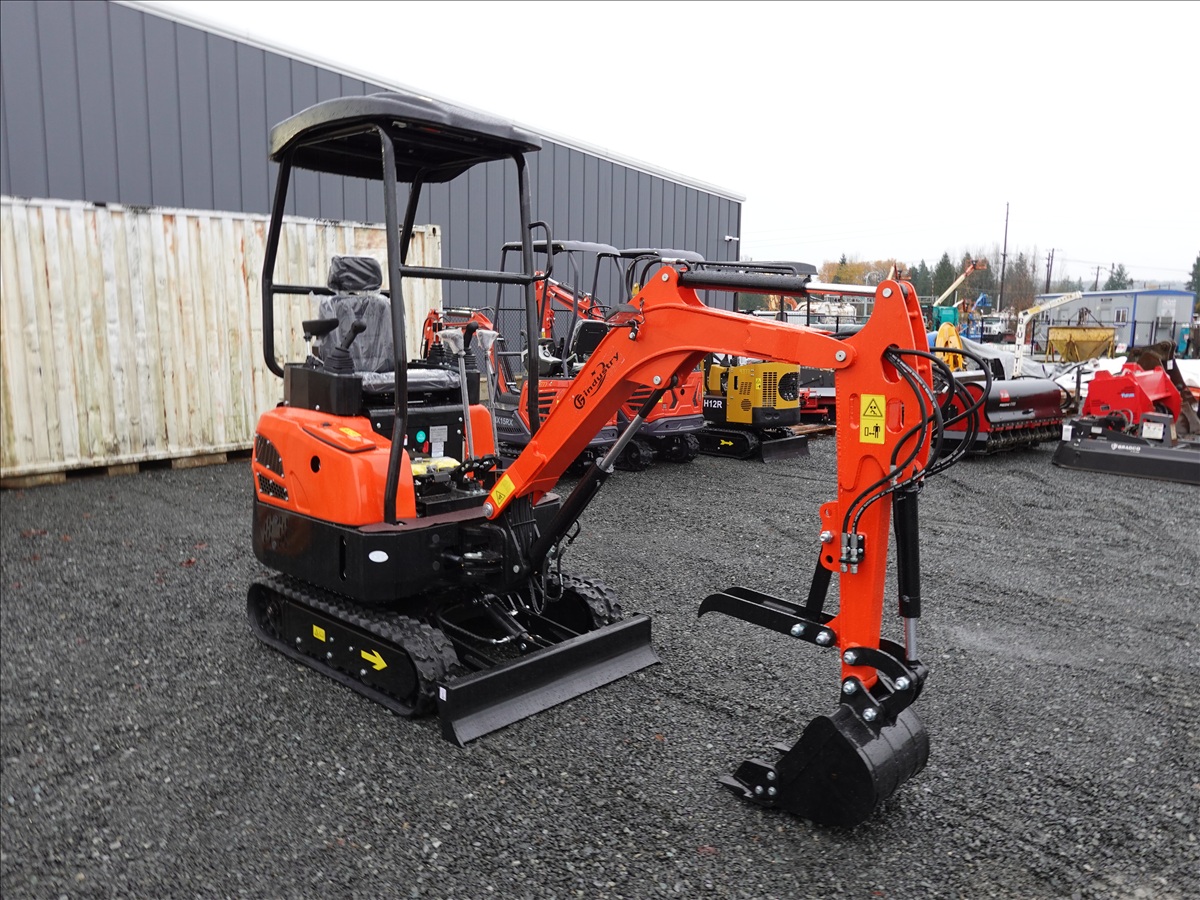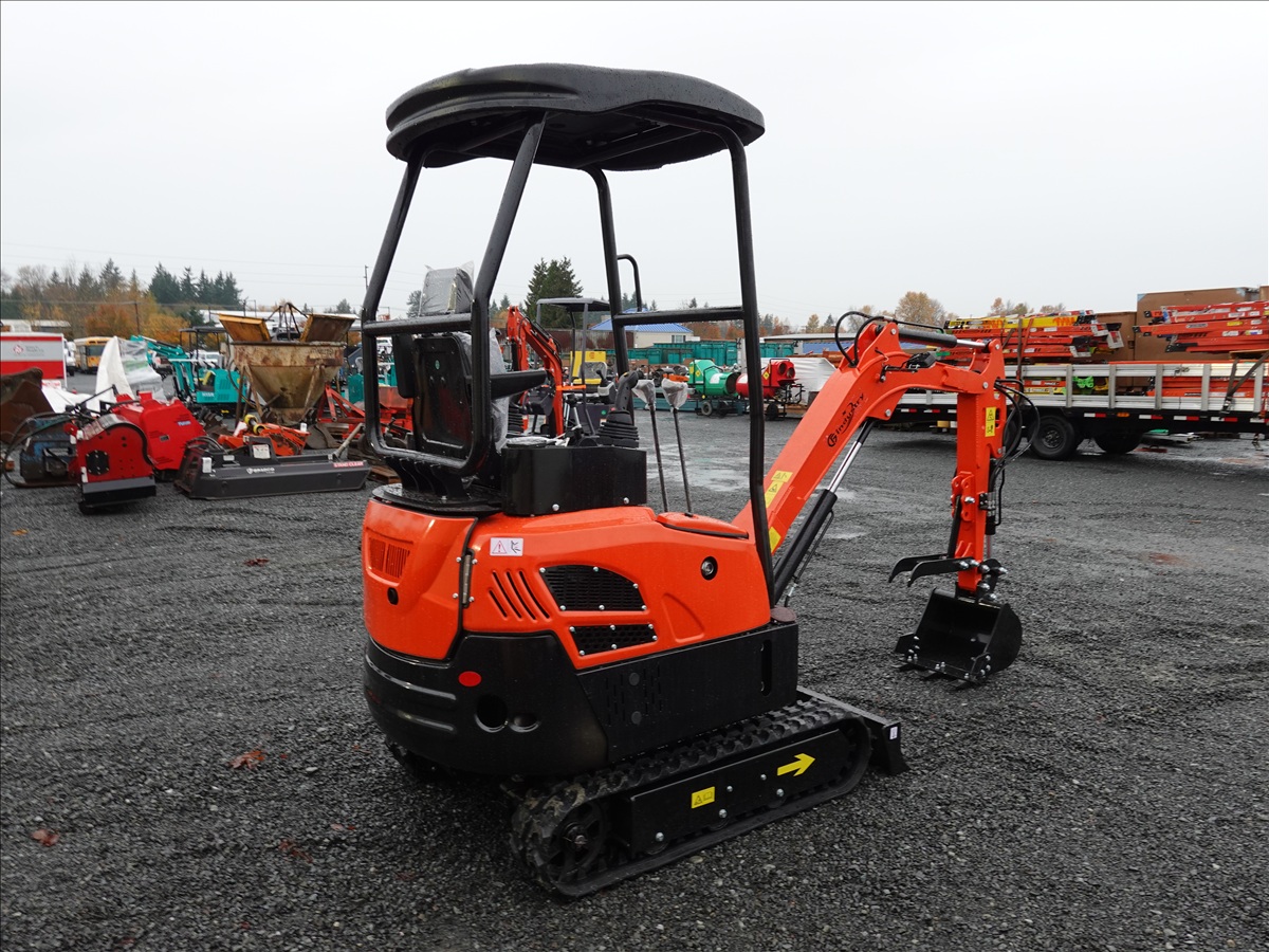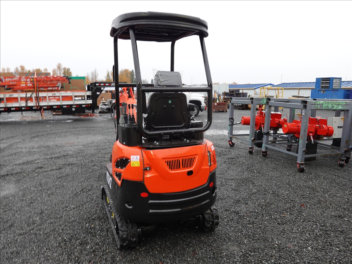 MINI EXCAVATOR, ZONSEN 2 CYL GAS, SWING BOOM, 14" BUCKET, THUMB, AUX HYD, BLADE, RUBBER TRACKS, CANOPY