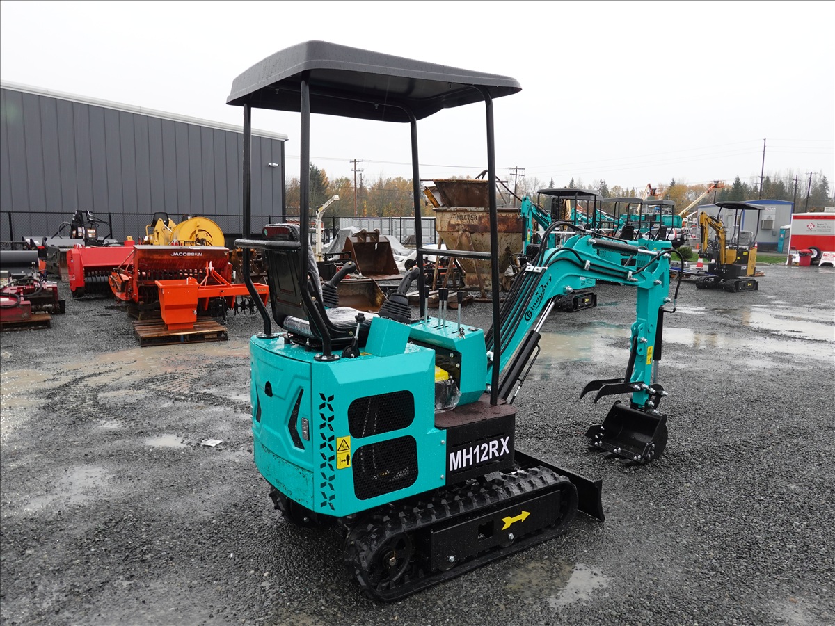 MINI EXCAVATOR, RATO 15 1 CYL GAS, 14" BUCKET, THUMB, BLADE, RUBBER TRACKS, CANOPY