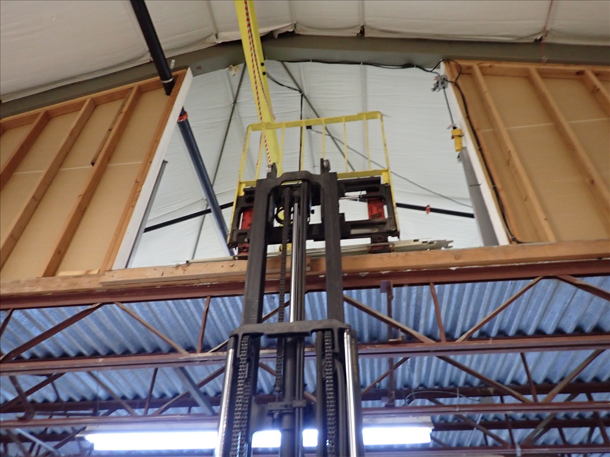 3,400 LB CAP. STAND UP SOLID TIRED FORKLIFT, 189" 3-STAGE MAST, SIDE SHIFT, CHARGER, S/N: A219N03263F, HRS: 860