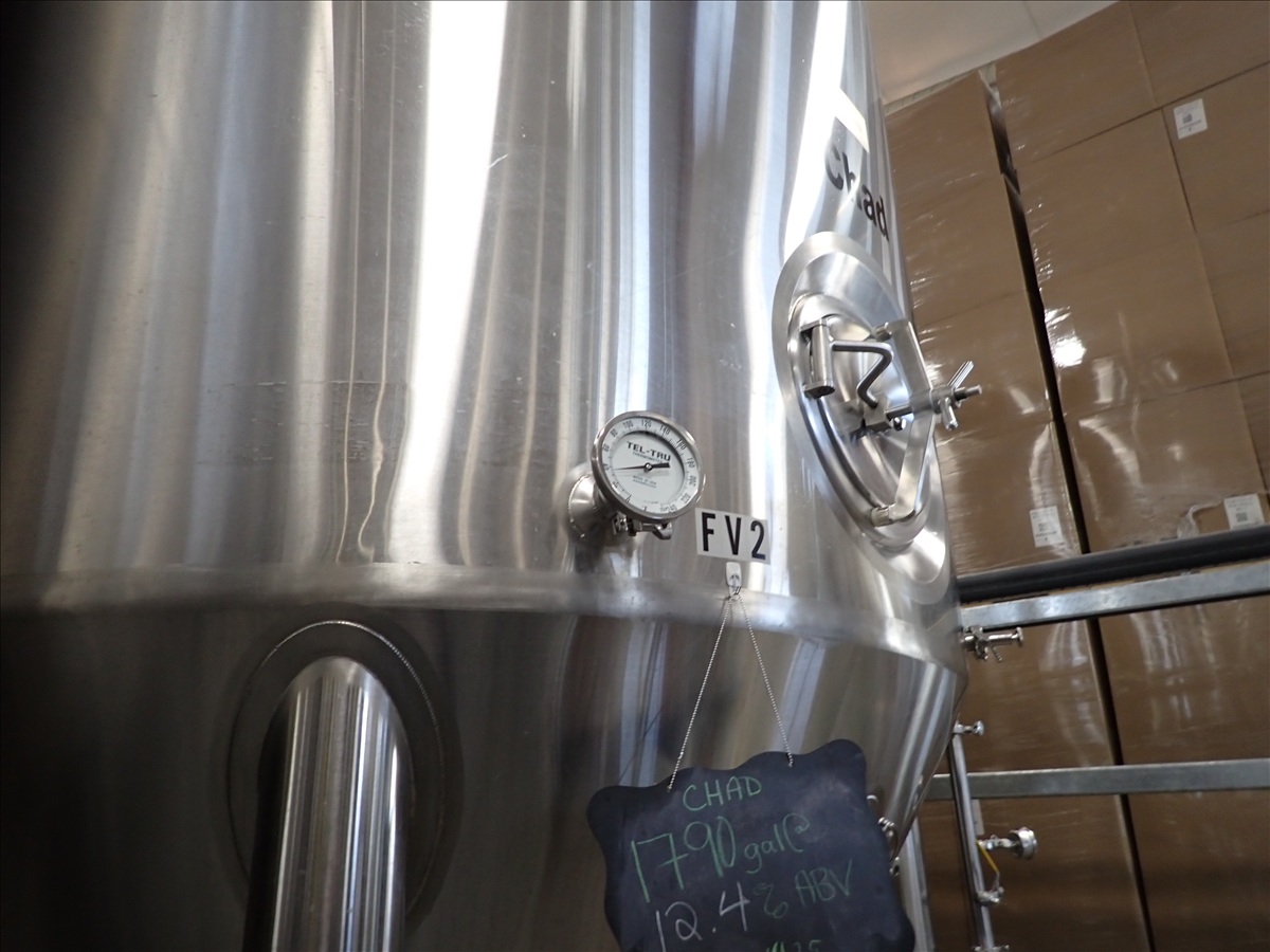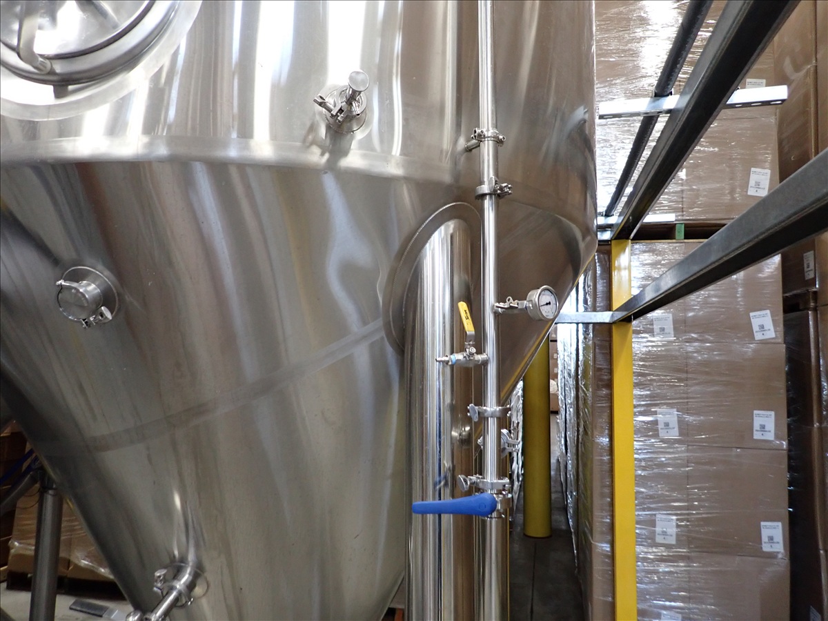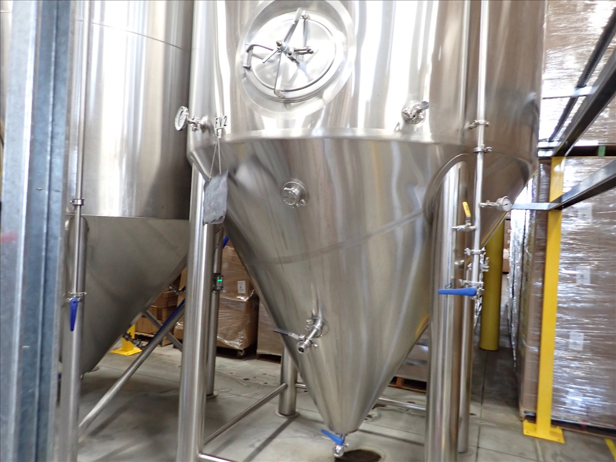 90 BARREL S/S JACKETED FERMENTATION TANK, FRONT GATE, VALVES, S/N: 1805