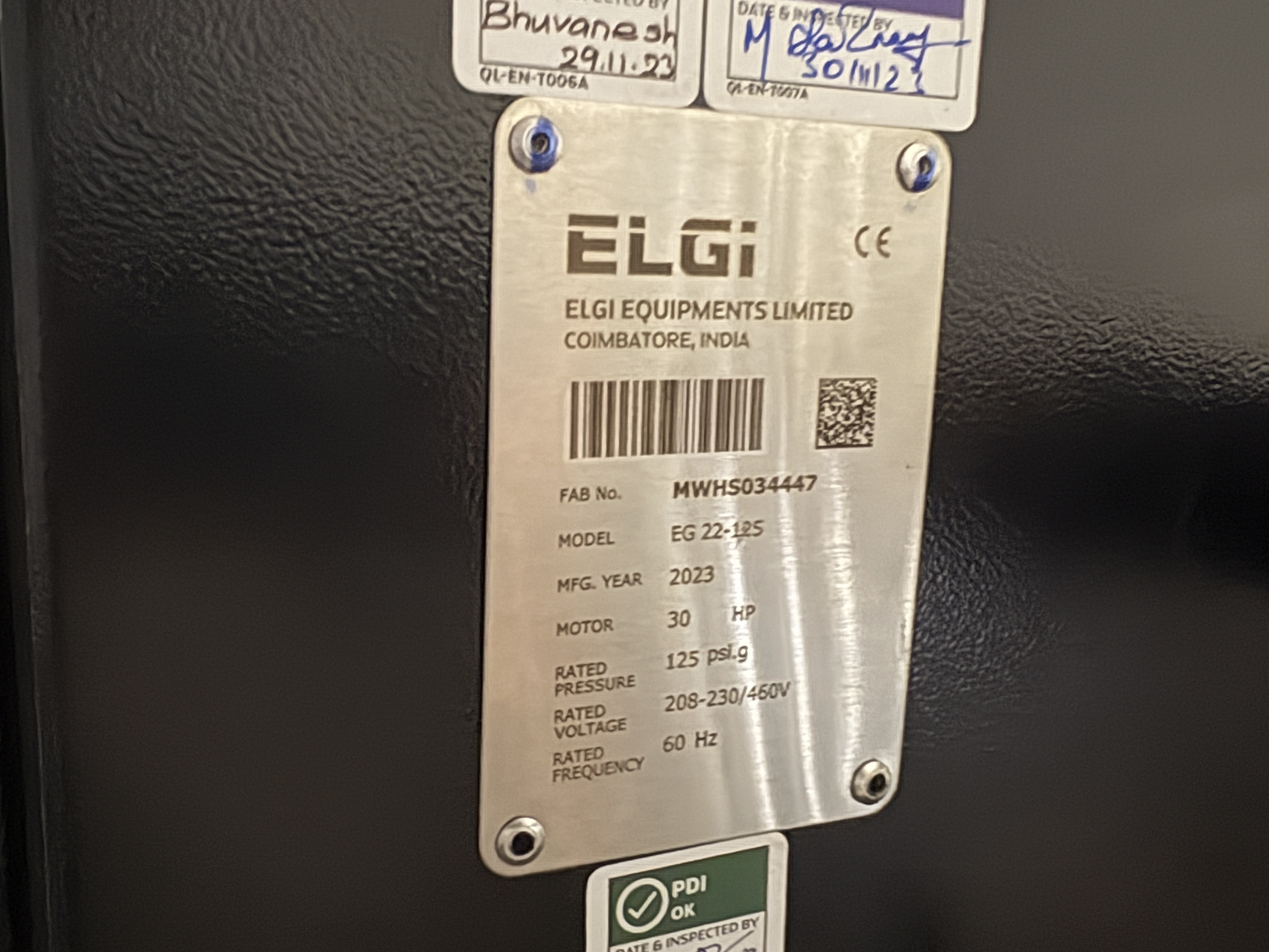 30-HP ROTARY AIR COMPRESSOR W/ELGI NEURON III DIGITAL CONTROLS; 125 PSI, 208-230/460V, 3-PH S/N: MWHS034447
