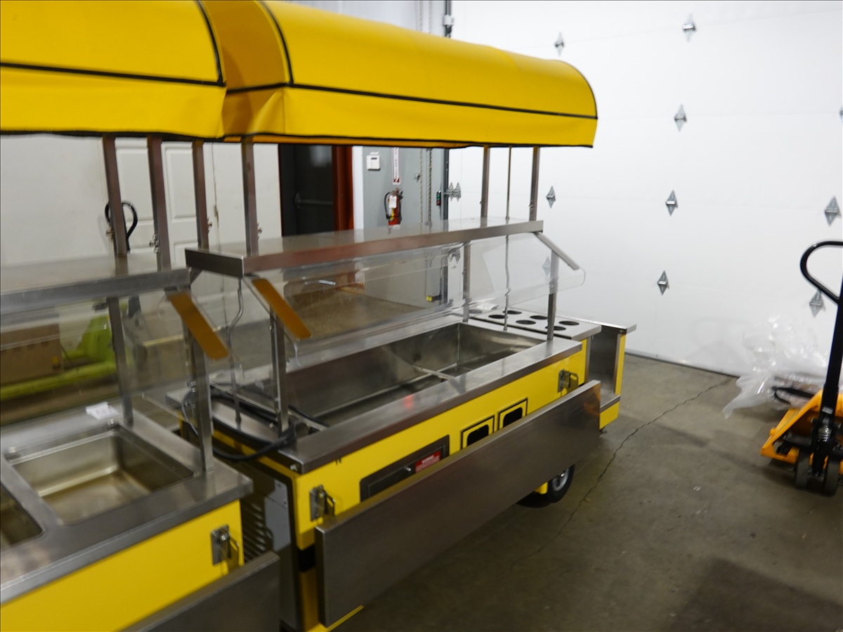 60" 4-PAN REFRIGERATED SS COLD FOOD TABLE, PLEXIGLASS HOOD, CASTERS, 120V, SINGLE PHASE W/COLORPOINT K28-RTS SS UTENSIL TRAY ON CASTERS