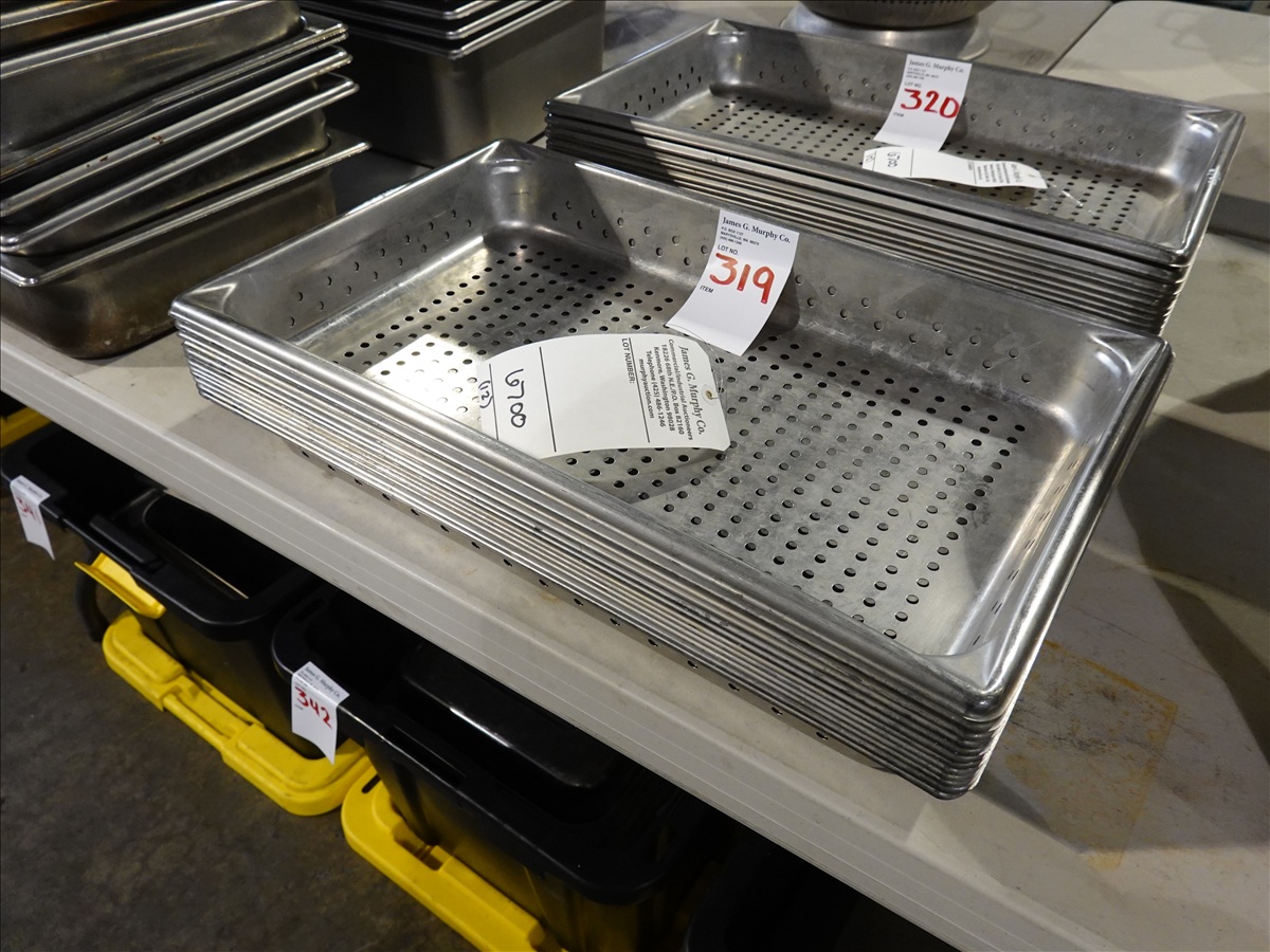 LOT, (12) 21"L X 13"W X 2"H SS PERFORATED PANS