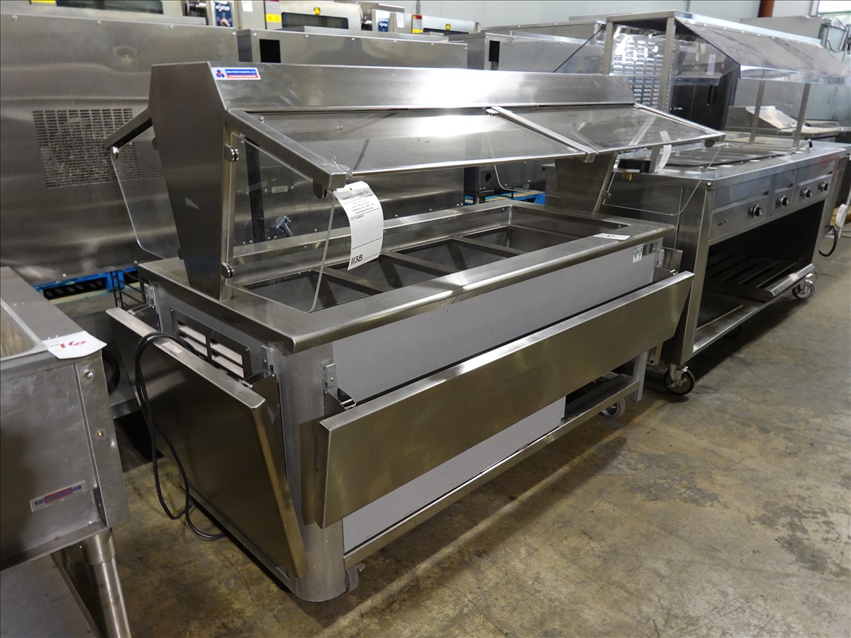 64" SS 4-COMPARTMENT FOOD WARMER W/PLEXIGLASS GUARD ON CASTERS, 120V