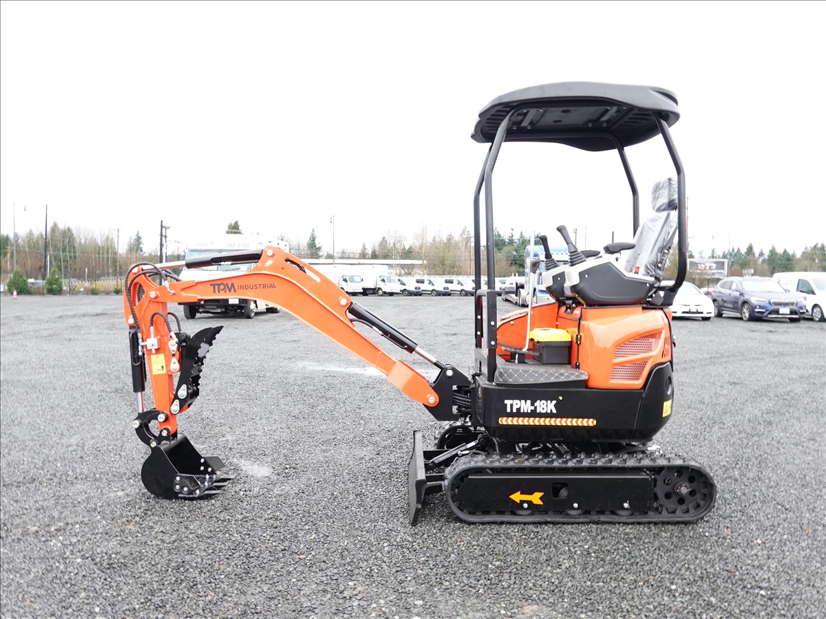 MINI EXCAVATOR, KUBOTA D722-E18 DIESEL, SWING BOOM, 14" BUCKET, HYD THUMB, AUX HYD, BLADE, RUBBER TRACKS, CANOPY