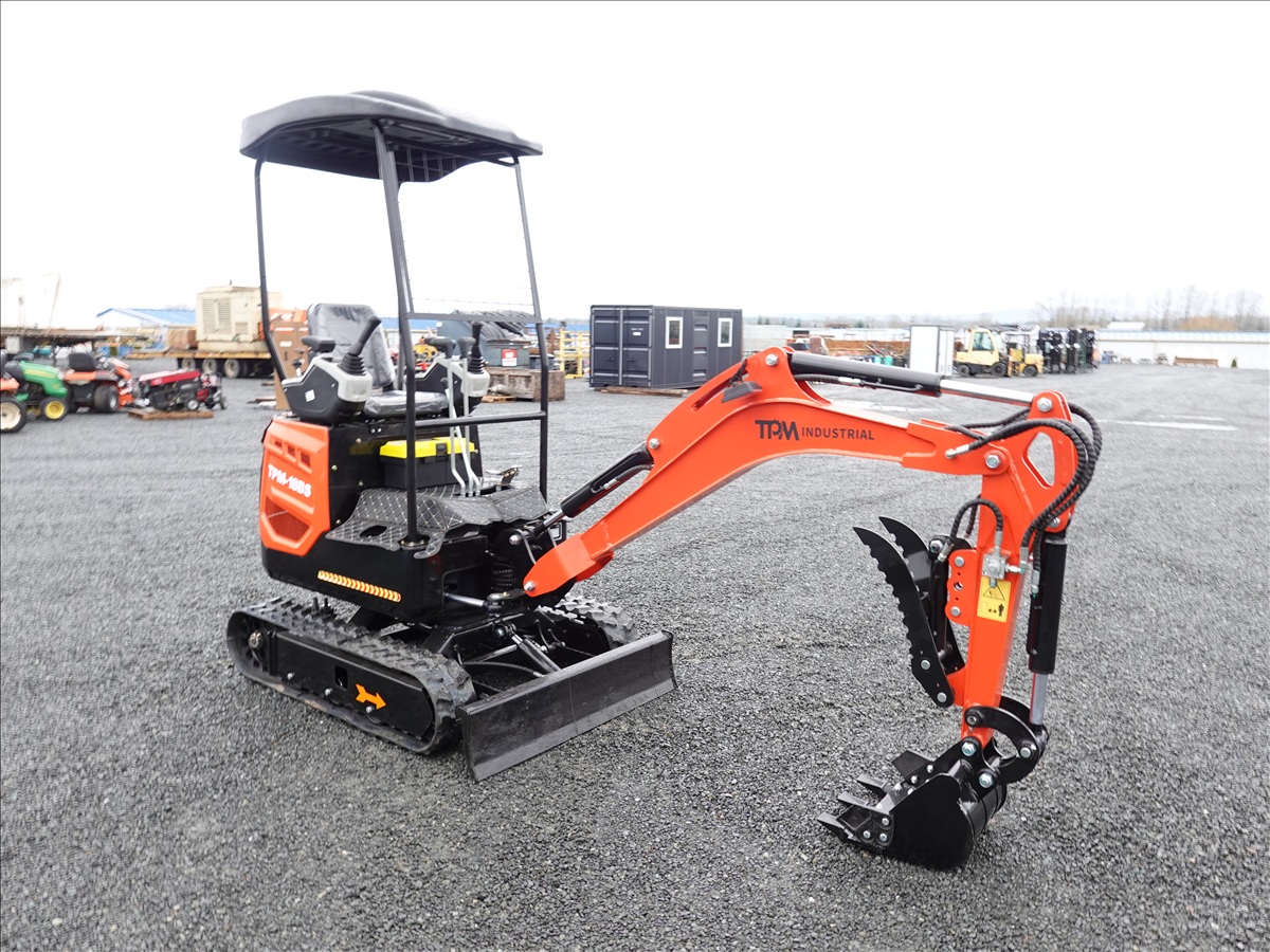 MINI EXCAVATOR, B&S XR2100 1 CYL GAS, SWING BOOM, 14" BUCKET, HYD THUMB, AUX HYD, BLADE, RUBBER TRACKS, CANOPY