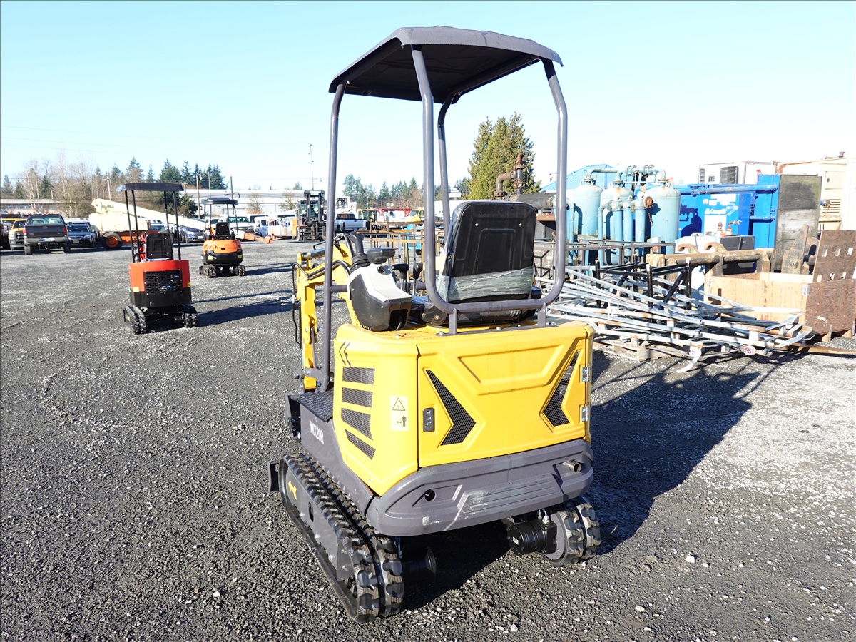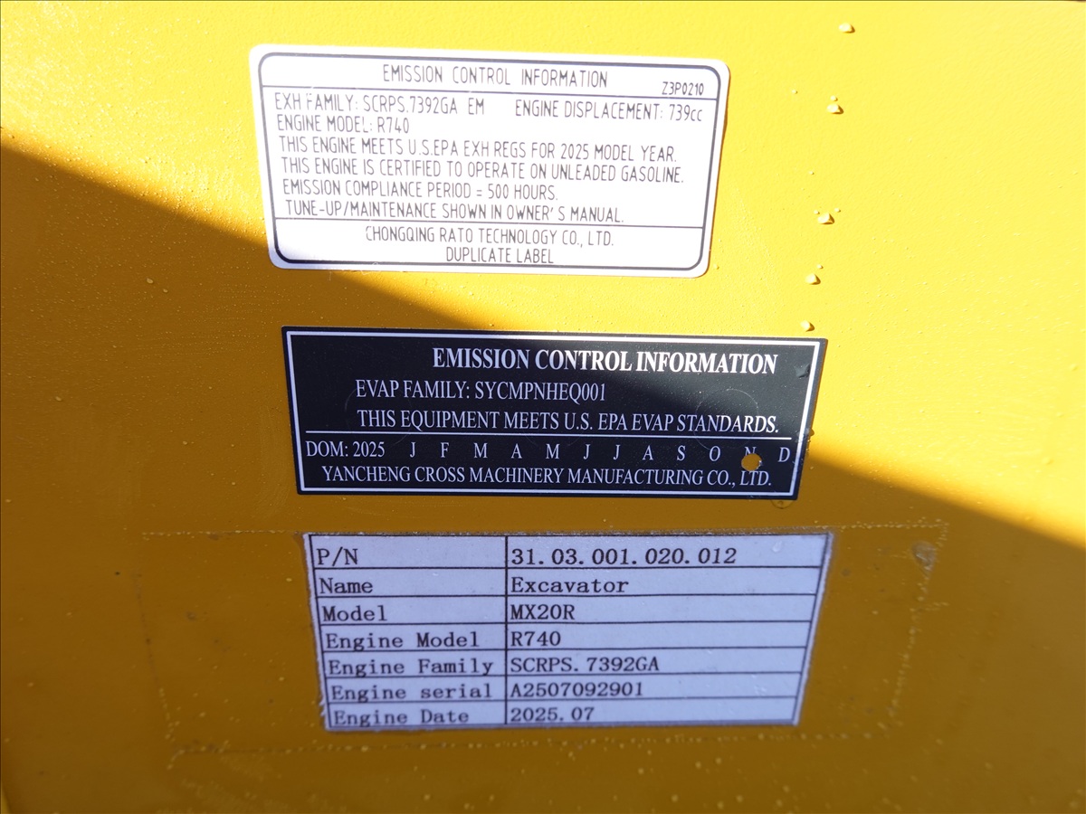 MINI EXCAVATOR, RATO 739CC 2 CYL GAS, 14" BUCKET, THUMB, AUX HYD, BLADE, RUBBER TRACKS, CANOPY