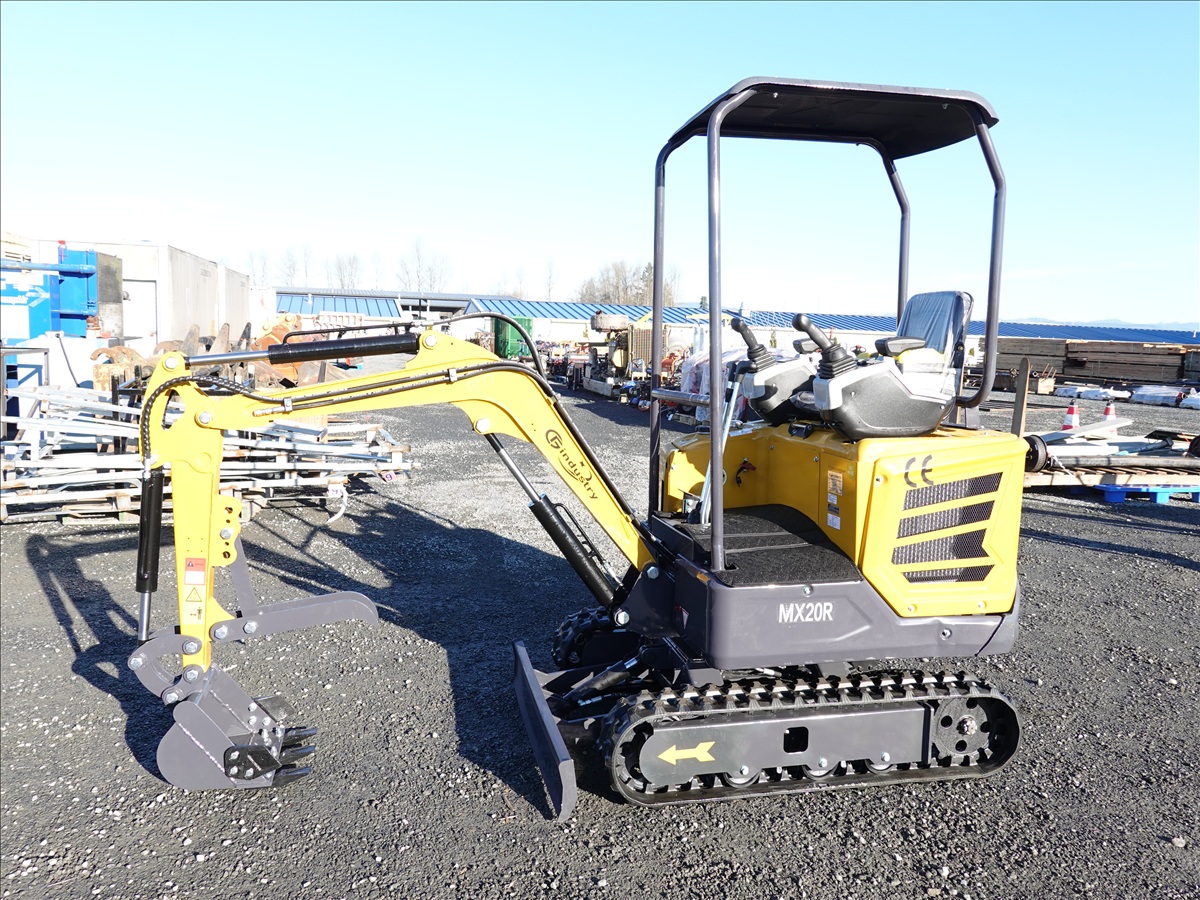MINI EXCAVATOR, RATO 739CC 2 CYL GAS, 14" BUCKET, THUMB, AUX HYD, BLADE, RUBBER TRACKS, CANOPY