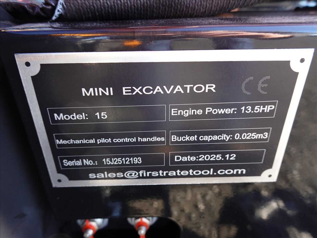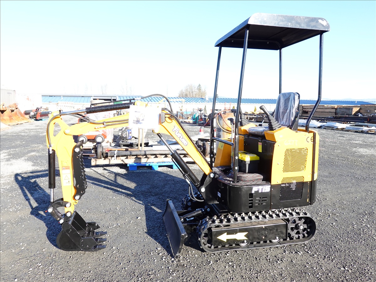 MINI EXCAVATOR, 420CC 1 CYL GAS, 13" BUCKET, THUMB, BLADE, RUBBER TRACKS, CANOPY