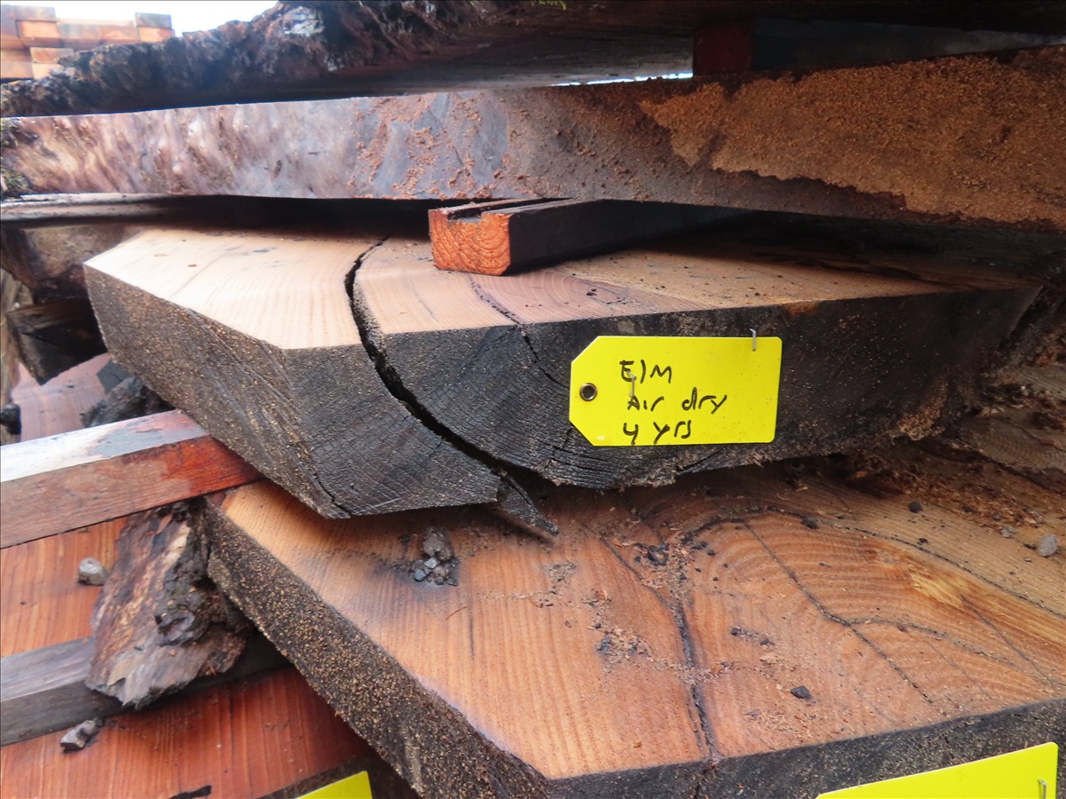 APPROX 101"L X 45"W X 2"H 4-YEAR AIR DRY ELM LIVE EDGE SLAB (NO REMOVAL BEFORE WEDNESDAY, FEBRUARY 18TH)