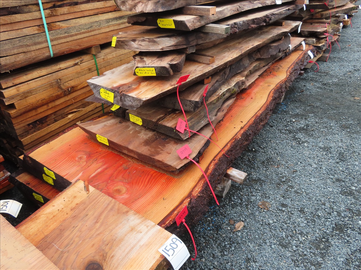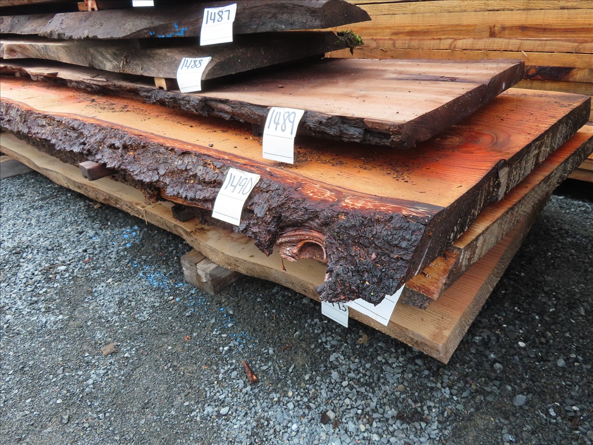 APPROX 135"L X 40"W X 3"H 5-YEAR AIR DRY FIR LIVE EDGE SLAB (NO REMOVAL BEFORE WEDNESDAY, FEBRUARY 18TH)
