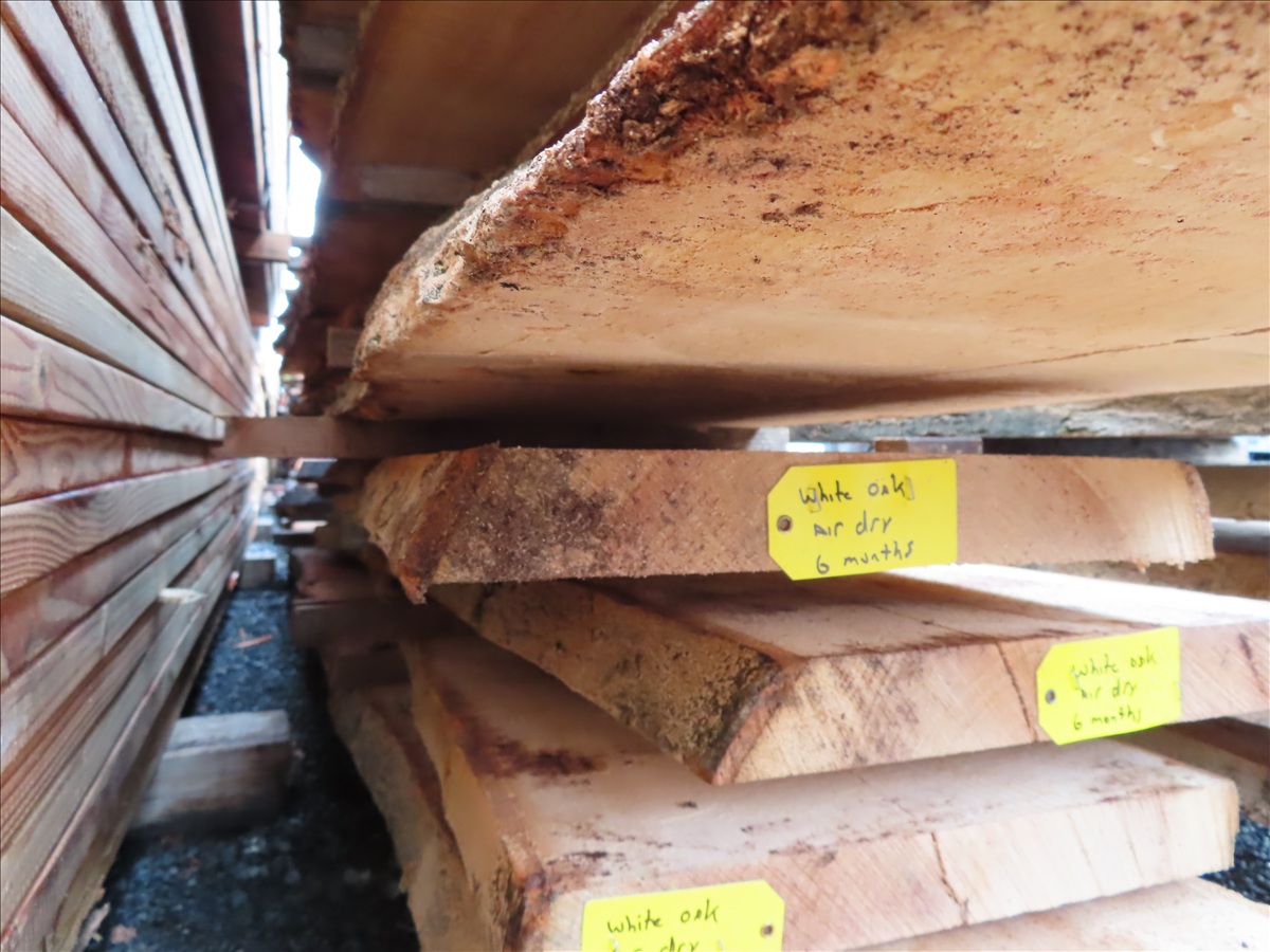 APPROX 137"L X 18"W X 2"H 6-MONTH AIR DRY WHITE OAK LIVE EDGE SLAB (NO REMOVAL BEFORE WEDNESDAY, FEBRUARY 18TH)