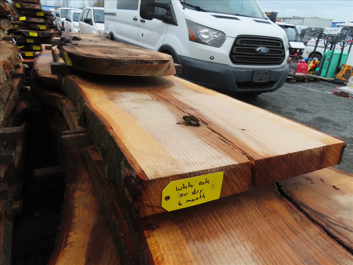 APPROX 136"L X 17"W X 2"H 6-MONTH AIR DRY WHITE OAK LIVE EDGE SLAB (NO REMOVAL BEFORE WEDNESDAY, FEBRUARY 18TH)