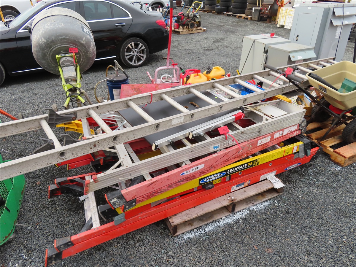 LOT, ASSORTED FIBERGLASS & ALUMINUM LADDERS ON THIS PALLET
