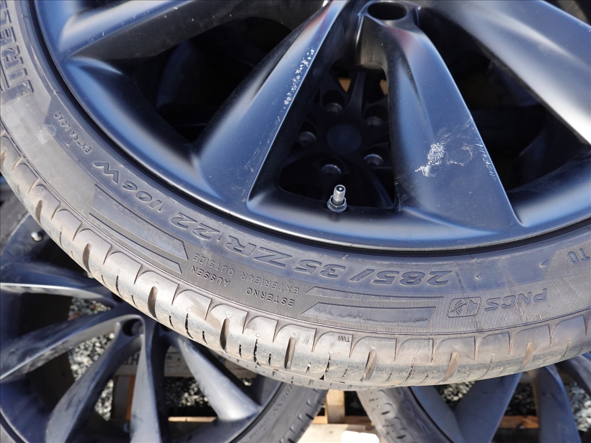 LOT, (3) 285/35ZR22 & (2) 265/35ZR22 TIRES MOUNTED ON 5-LUG TESLA WHEELS