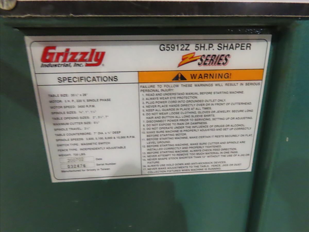 5 HP SPINDLE SHAPER, 35-1/2" X 28" T-SLOT TABLE, 220V, SINGLE PHASE W/POWER FEED, 230V