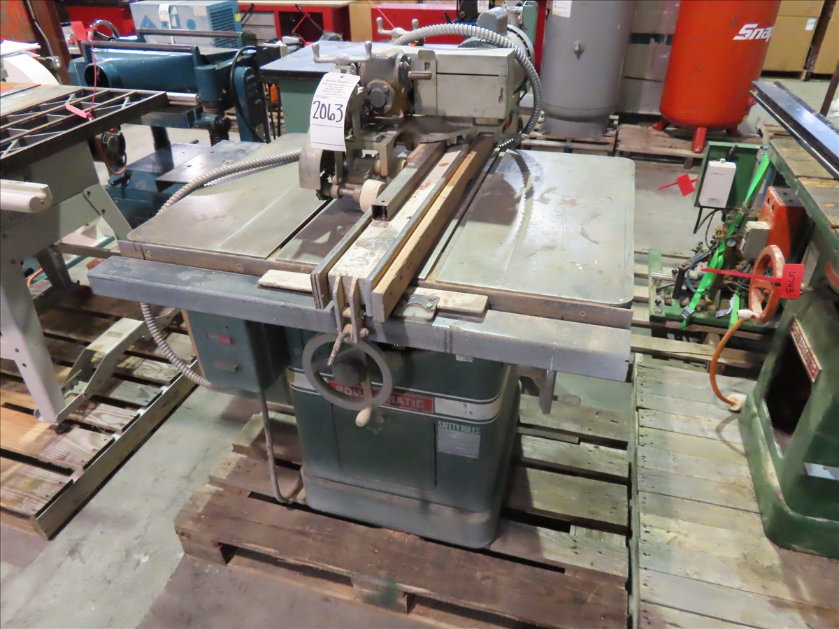 12" TILTING ARBOR TABLE SAW, 38" X 28" TABLE W/KING E-Z SAFETY FEED, 115V