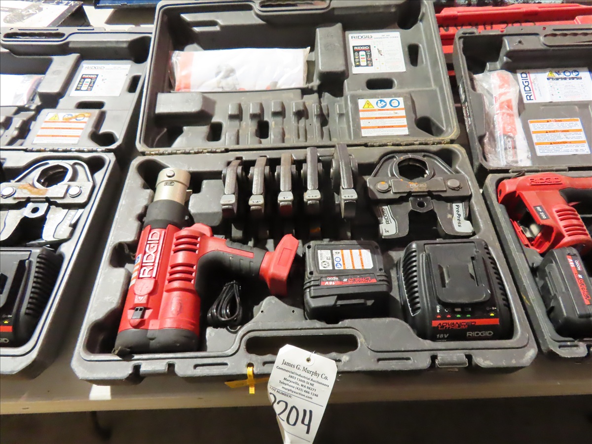 CORDLESS 18V PRESS TOOL W/(6) DIES, (2) BATTERIES, (1) CHARGER & CASE