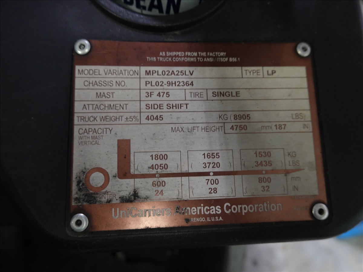 4,750LB CAP FORLIFT, LIGHTS, ROPS, PROPANE, 3-STAGE MAST, SIDESHIFT, PNUEMATIC TIRES