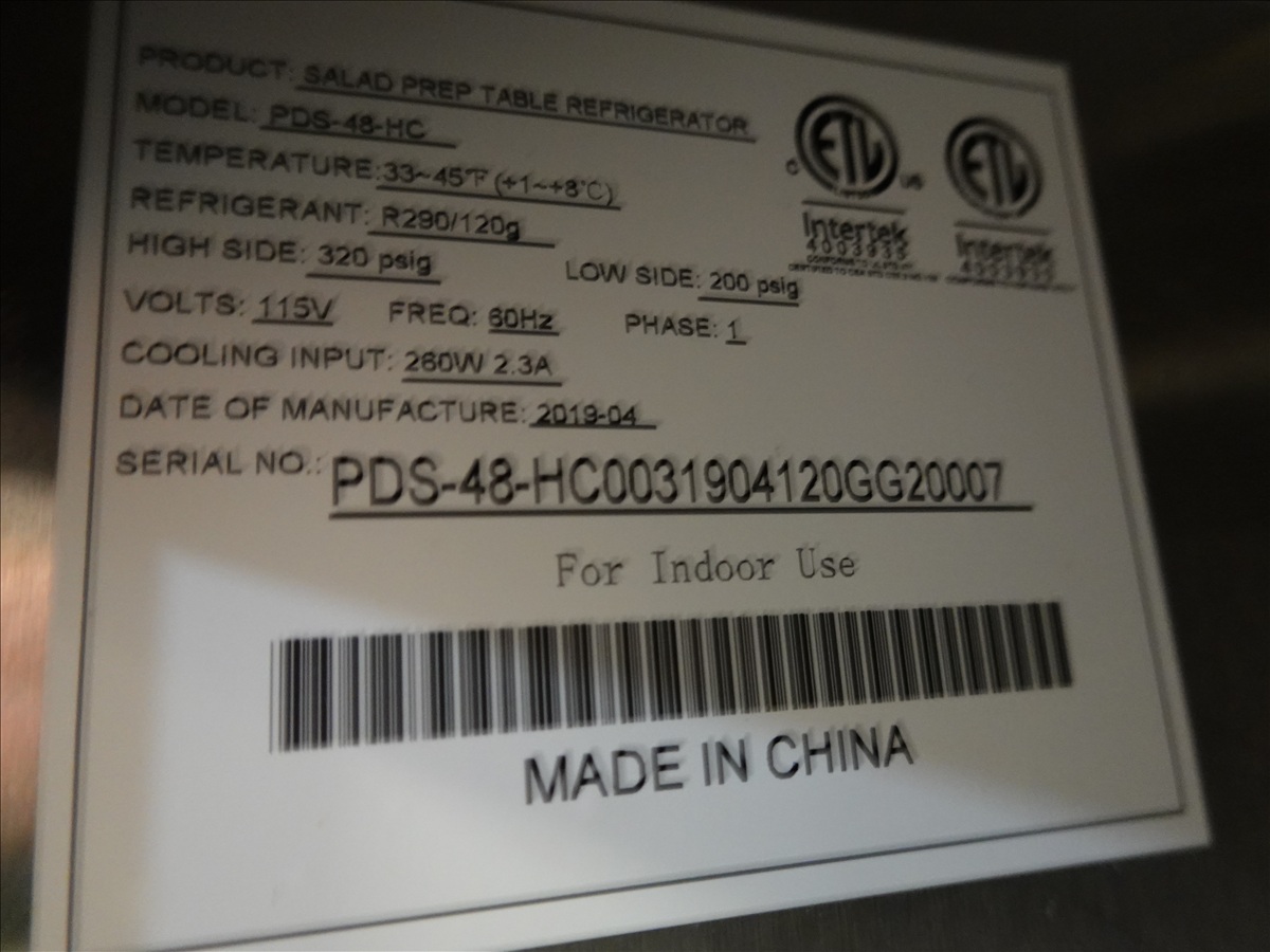48" REFRIGERATED PREP STATION, 115V, 60HZ, SINGLE PHASE