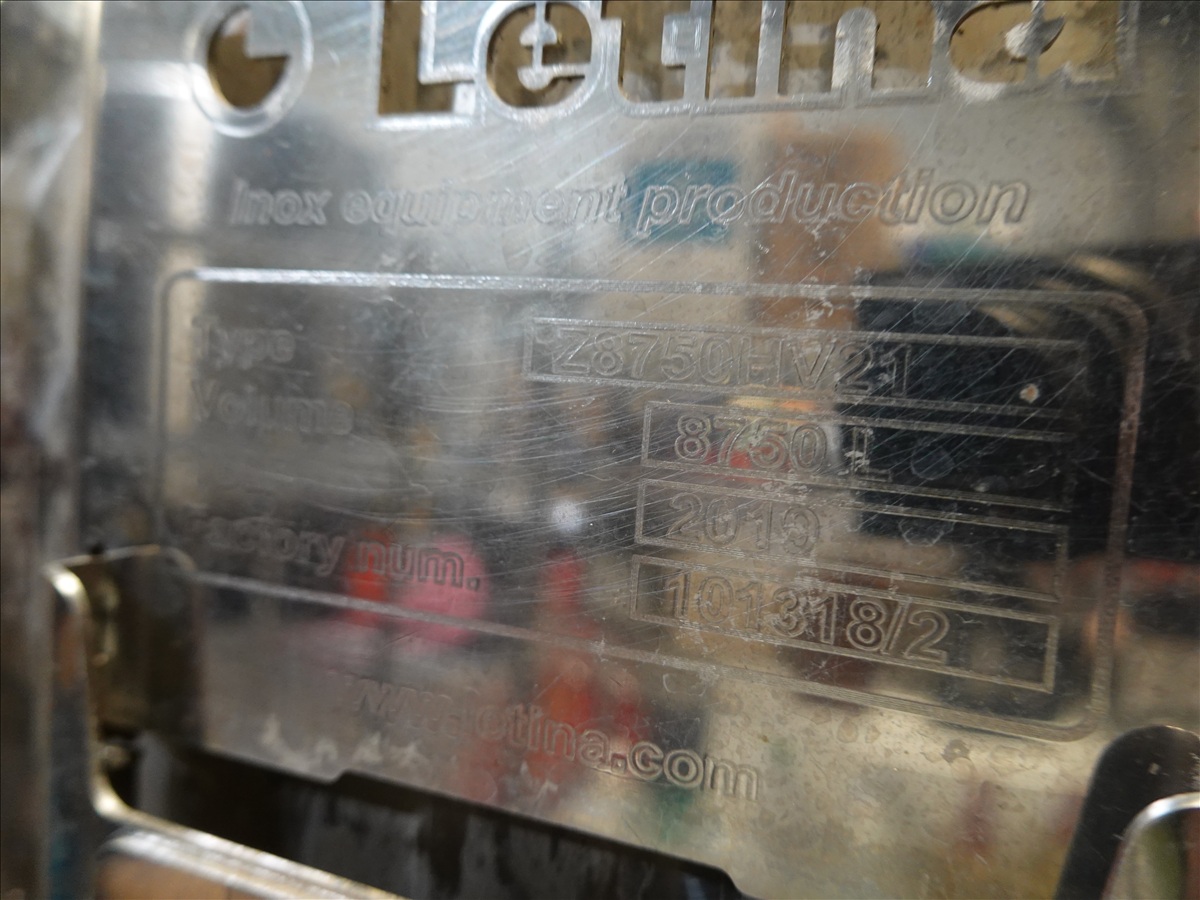 8,750L S/S JACKETED FERMENTATION TANK, VALVES, GUAGE, FRONT GATE