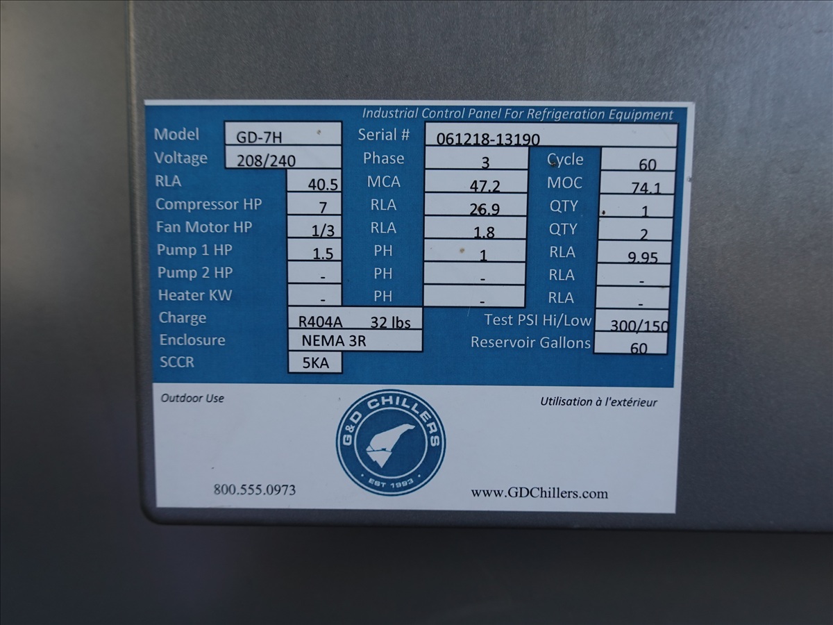GLYCOL CHILLER, 7HP, 60 RES. GALLONS, 3-PHASE