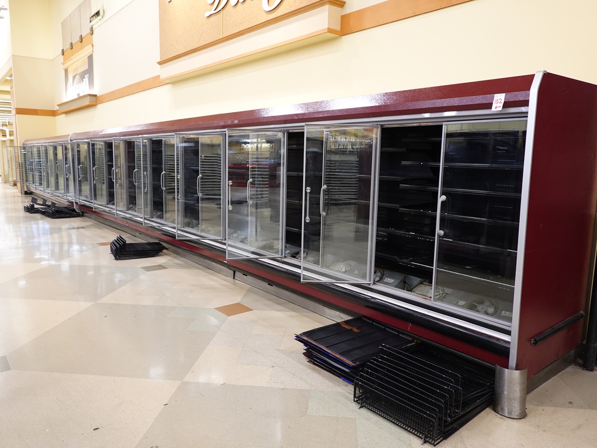 30-GLASS DOOR ROW OF REFRIGERATED REACH-IN DISPLAY CASES