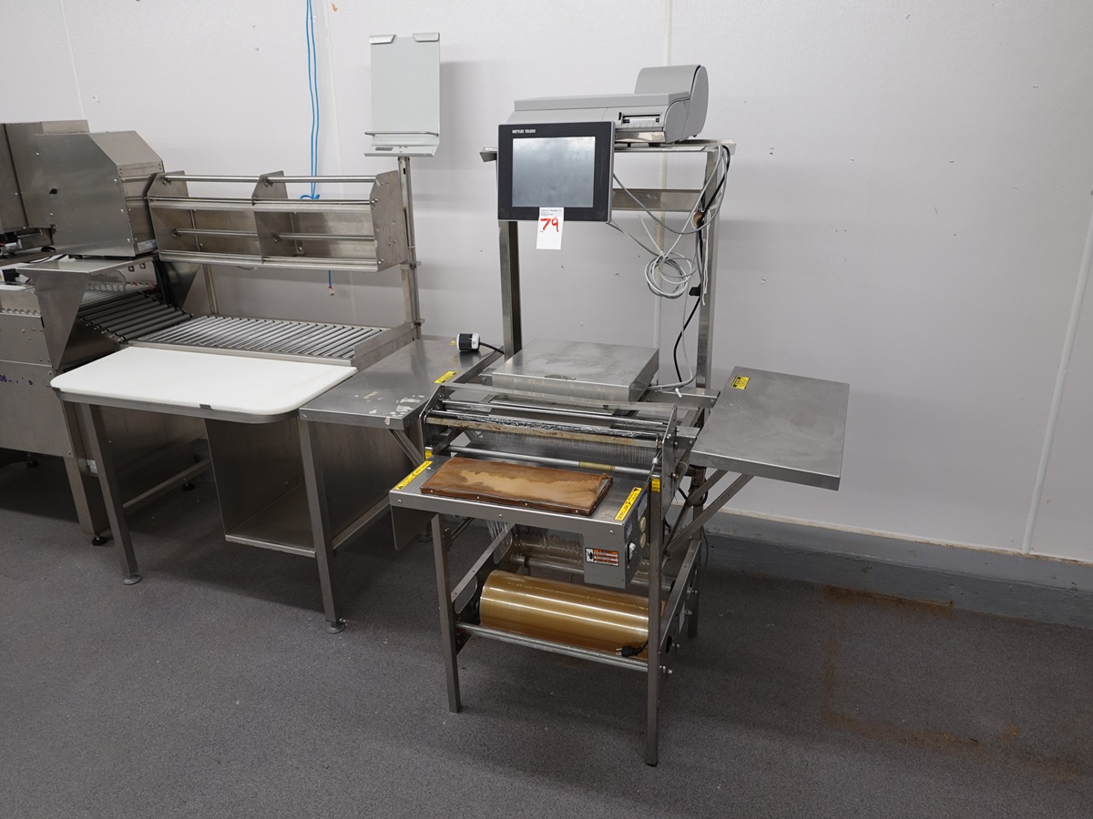 STEP SAVER HAND WRAPPING STATION, METTLER TOLEDO BCR30 S/S WEIGHING SCALE PLATFORM (50-LB CAP) & METTLER TOLEDO PACT-M-DD PRINTER W/TOUCHSCREEN CONTROLS