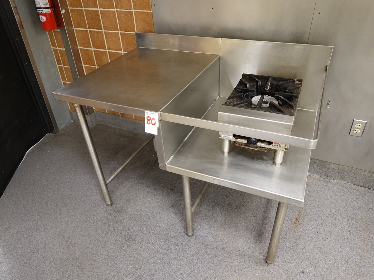 12" SINGLE BURNER GAS STOCKPOT RANGE W/48" S/S EQUIPMENT STAND/TABLE