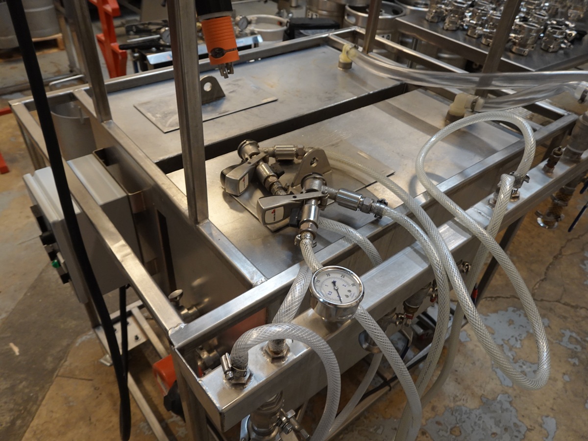 DUAL HEAD KEG WASHER, CASTERS, INTERFACE INNOVATIONS CONTROLS, (2) MICRO MATIC CONNECTS