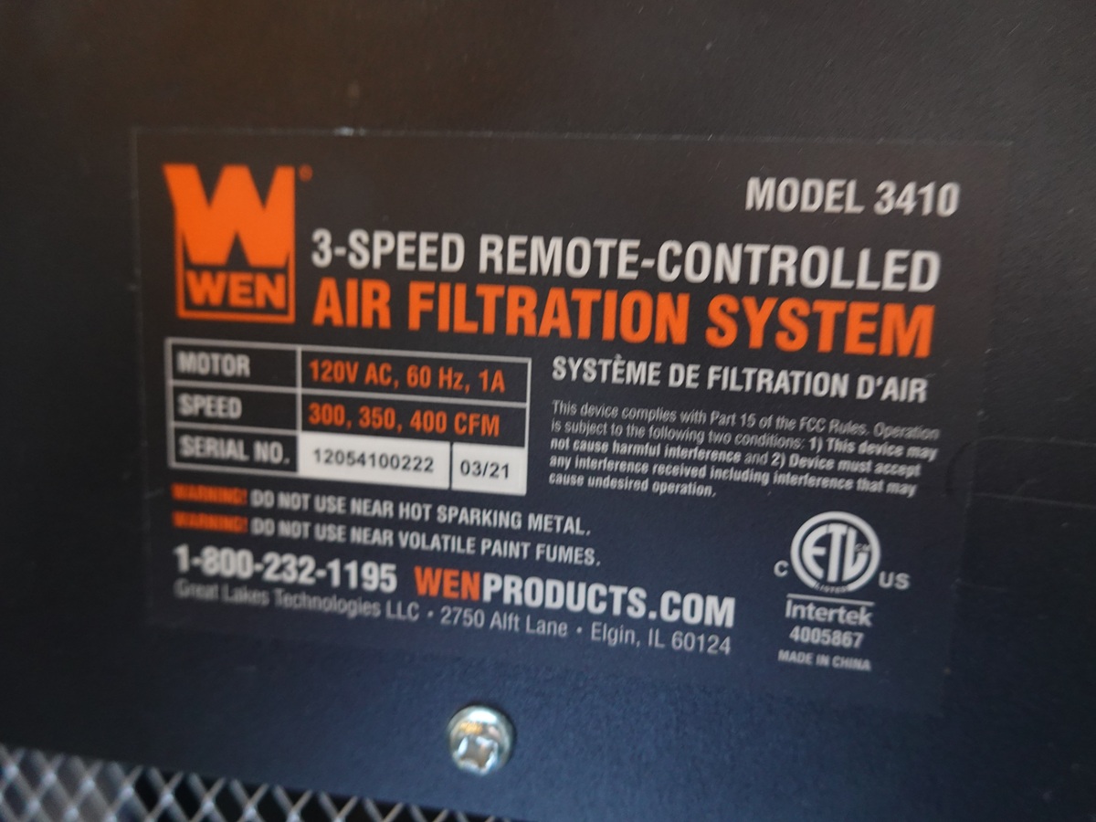 3-SPEED REMOTE CONTROLLED AIR FILTRATION SYSTEM, 120V, 60HZ, SIMPLE AMP