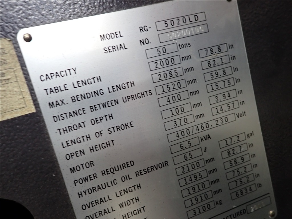 78" X 50 TON HYDRAULIC PRESS BRAKE, BACK GAUGE, QUICK CONNECT DIE HOLDERS, LD CONTROLS