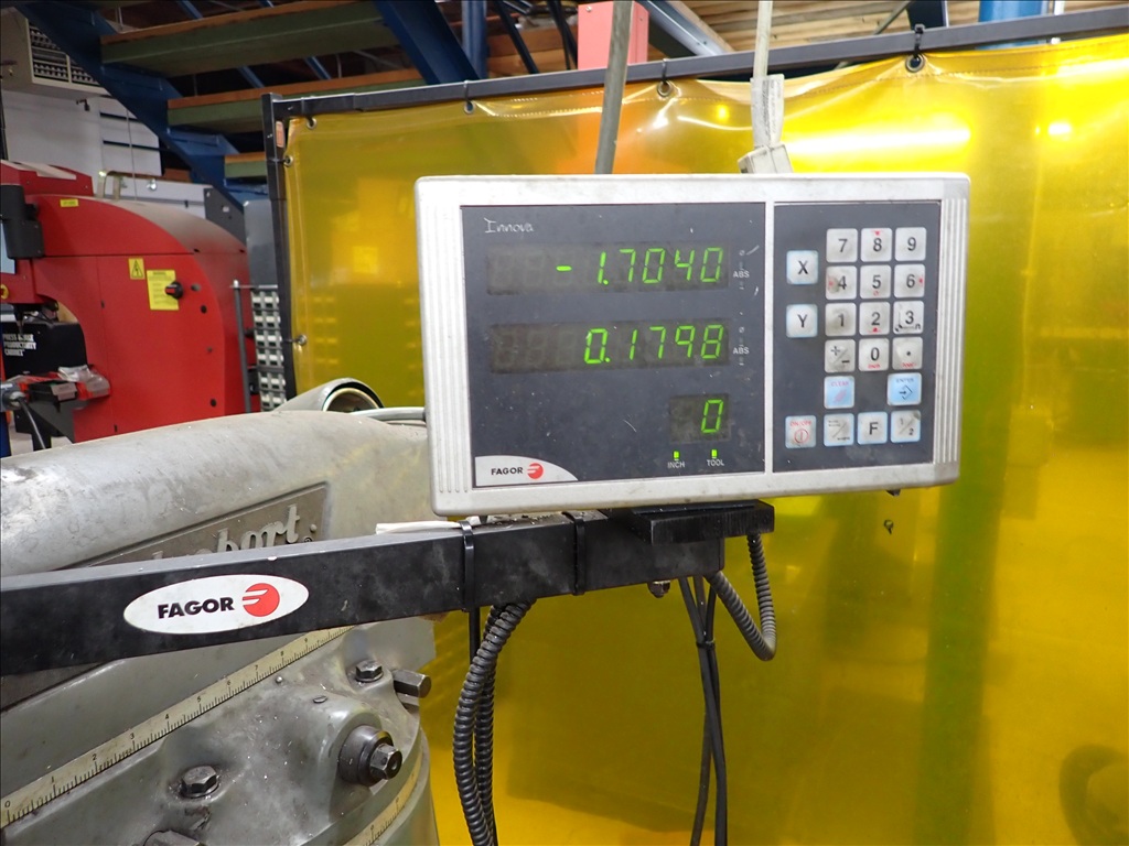 2HP VERTICAL MILLING MACHINE, 9"X48" POWER TABLE, KURT POWER DRAWBAR, FAGOR DIGITAL READOUT