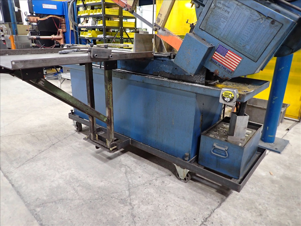 HORIZONTAL METAL CUTTING BANDSAW, COOLANT SYSTEM, FEED, CLAMP, ON CASTERS