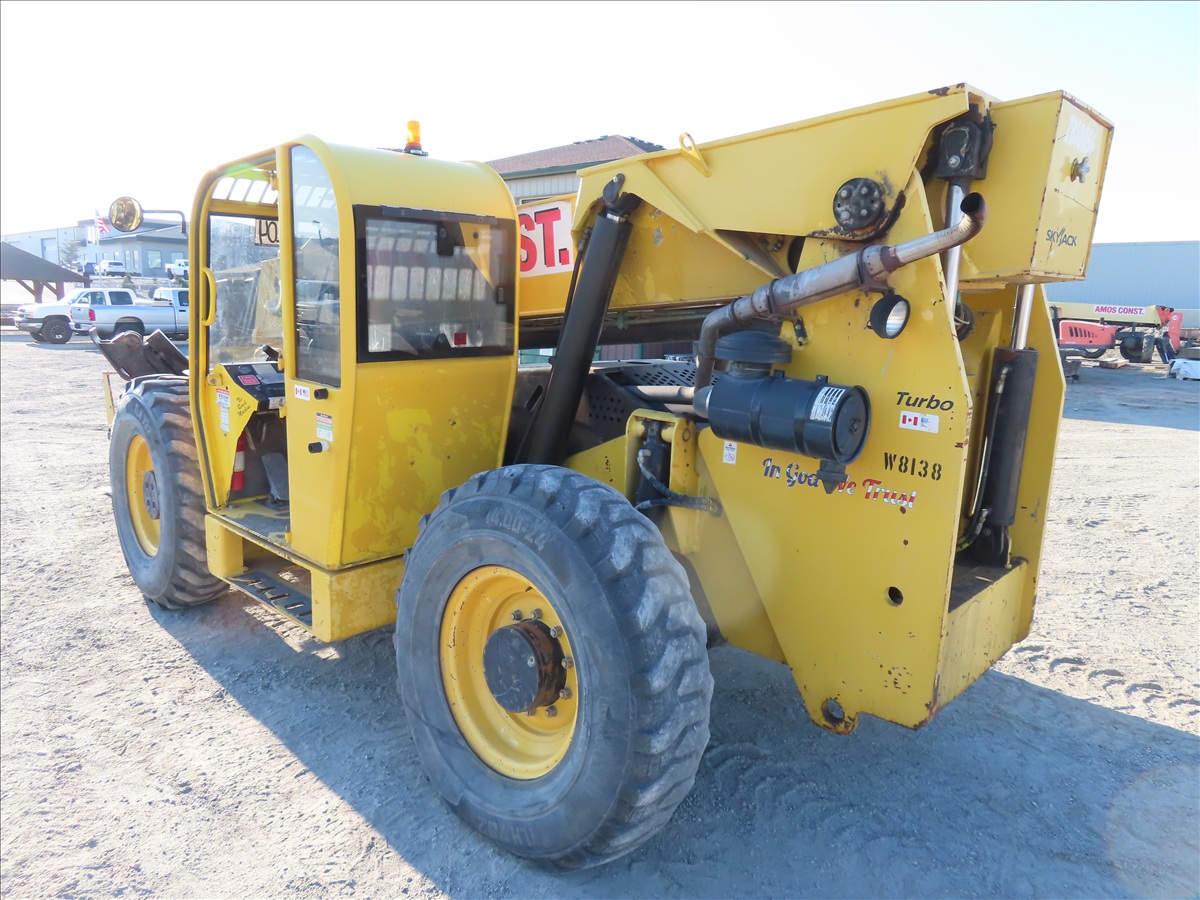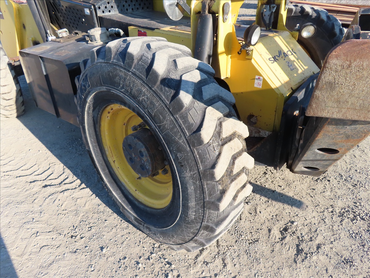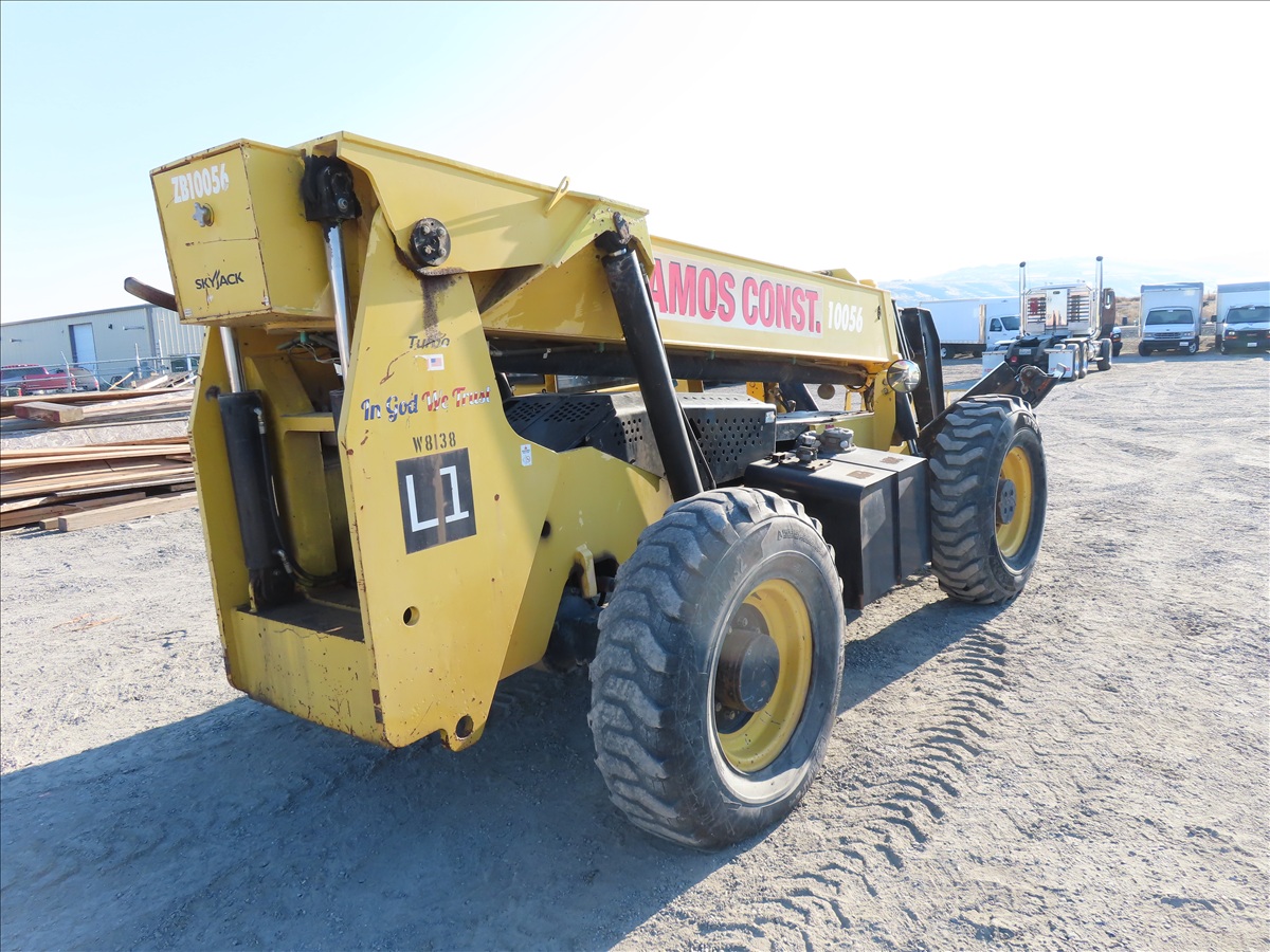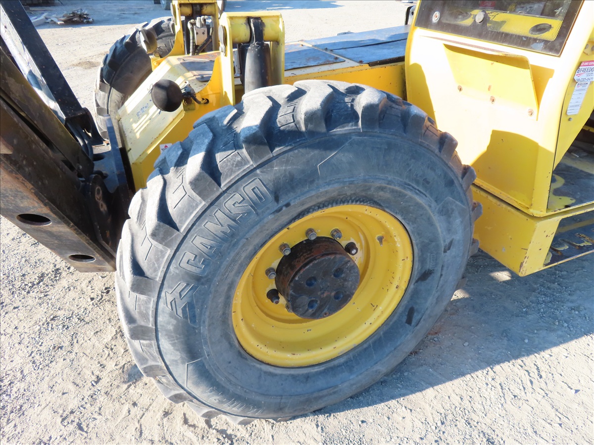 4X4X4 10,000 LB CAP TELESCOPIC FORKLIFT, CAB, 56' LIFT HEIGHT, 4-SECTION BOOM, HYDRAULIC STABILIZERS, CUMMINS 4 CYL DIESEL, 14.00-24 (BLOWN REAR HUB, HOUR METER READS: 9,032