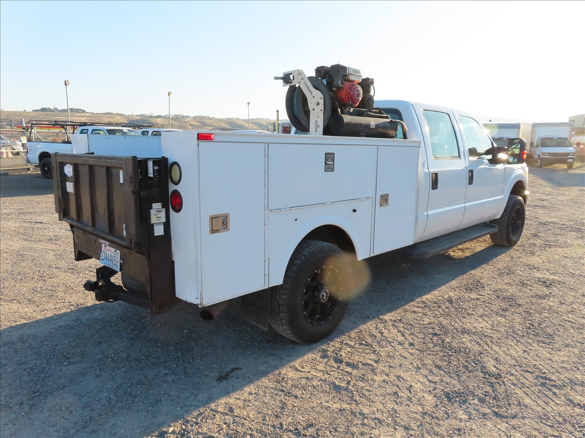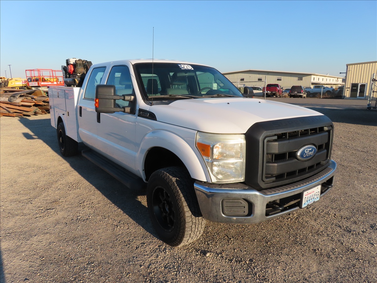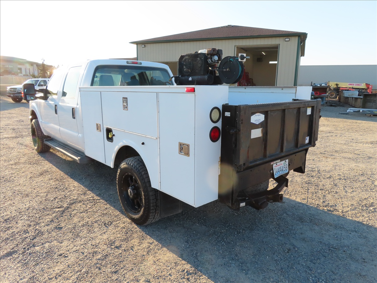 CREW CAB, SERVICE BODY PICKUP, 105" SERVICE BODY, TOMMY GATE HYDRAULIC LIFTGATE, 8-GAL AIR COMPRESSOR W/HONDA GX160, V8 AUTO, 4WD, P/WDW, P/LOCK, P/MIRROR, CRUISE, TILT, HANDS FREE, ODOMETER READS: 141,655 (CRACKED WINDSHIELD)