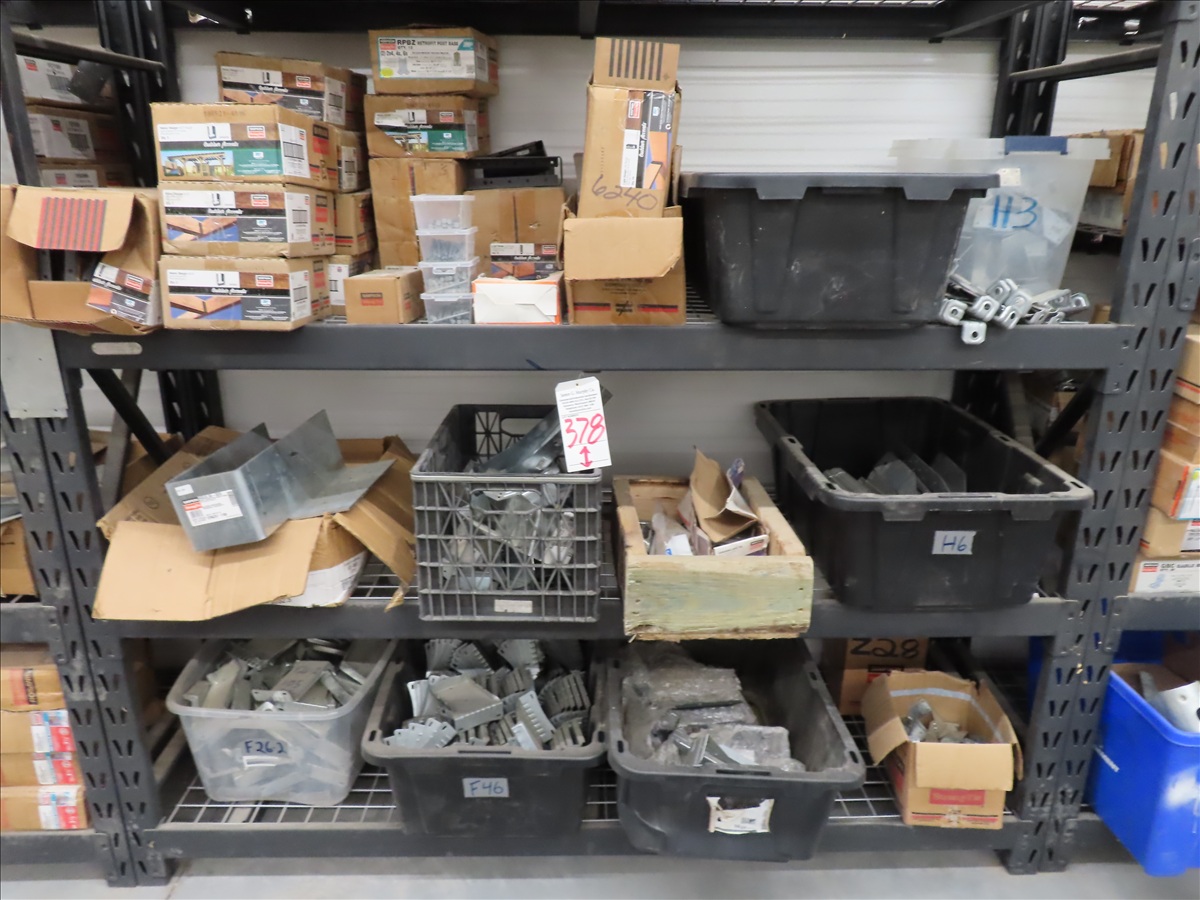 LOT, ASSORTED SIMPSON STRONGTIE HARDWARE ON THIS SHELF W/SHELF