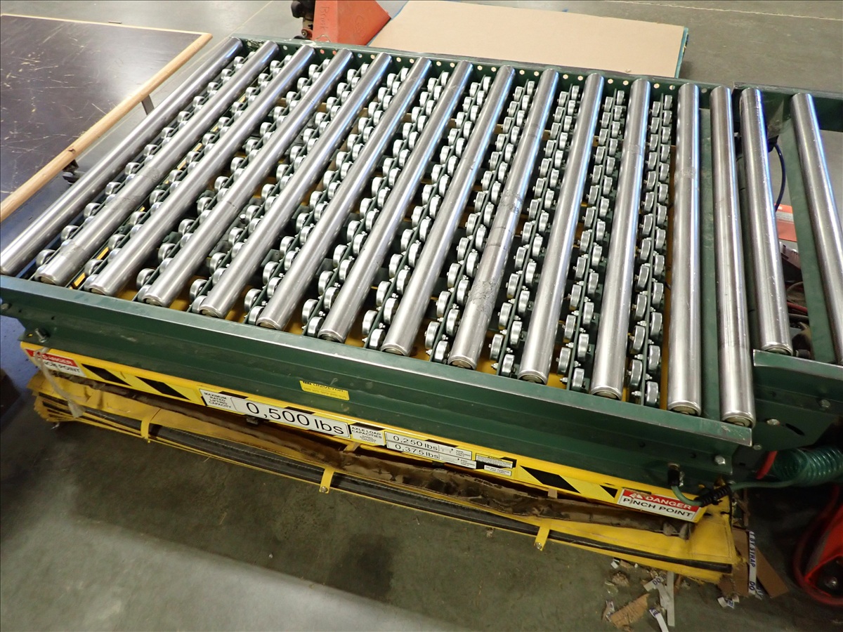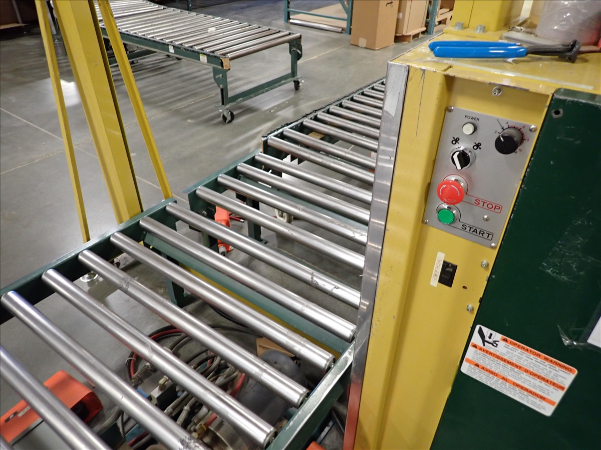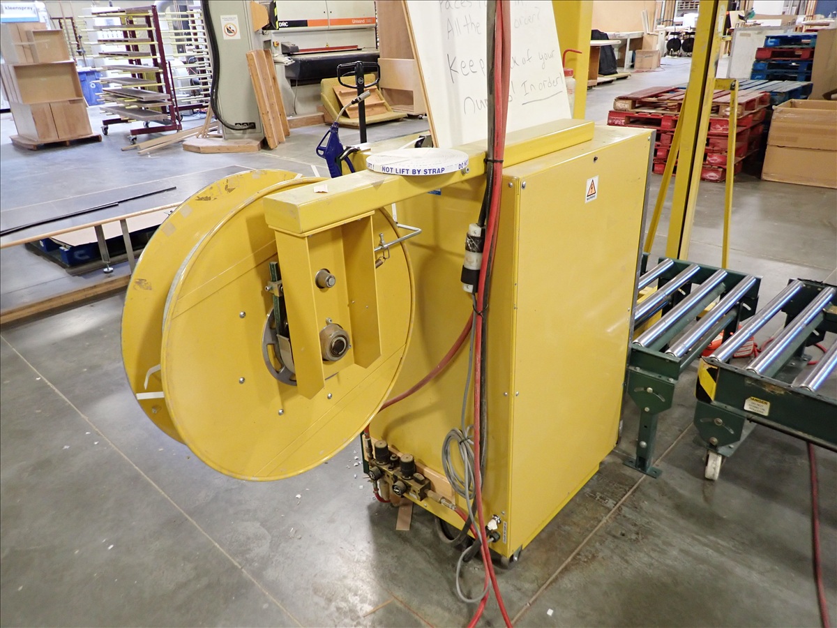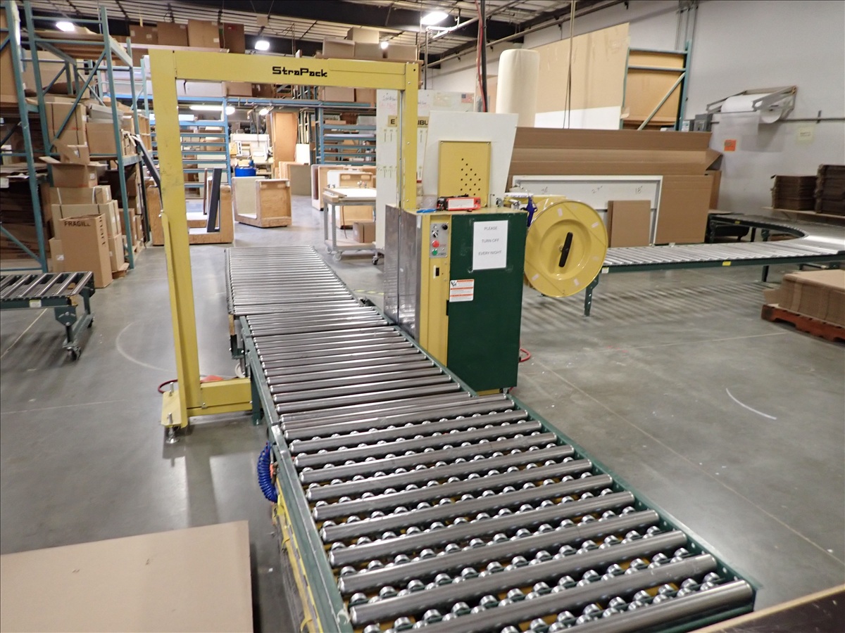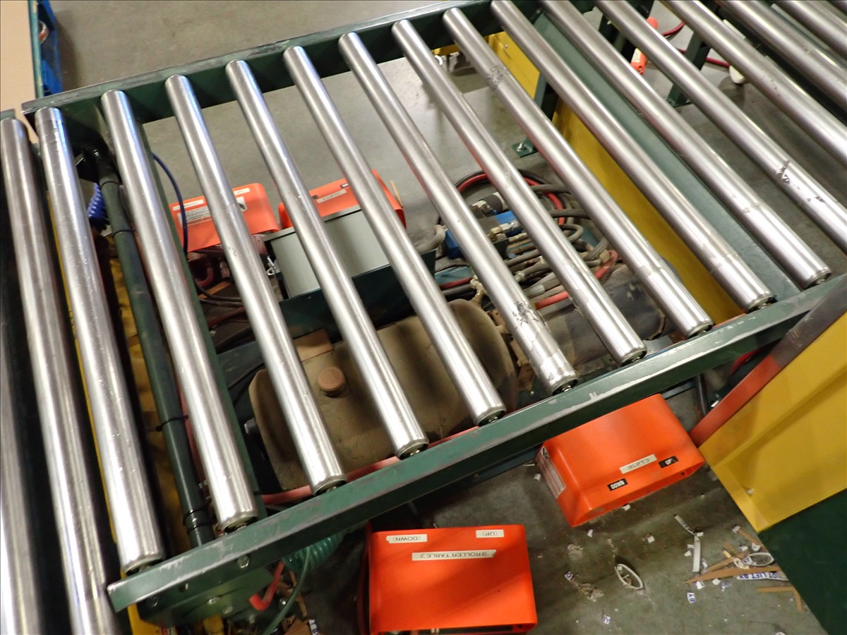 SEMI AUTOMATIC BANDING STATION W/ROLL CONVEYOR & SCISSOR LIFT TABLE